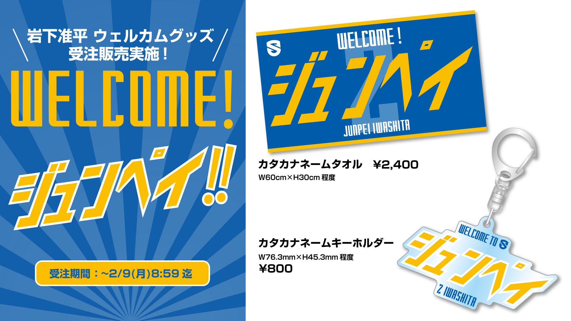 【予約受注商品】岩下准平選手 WELCOMEグッズ ネームタオル