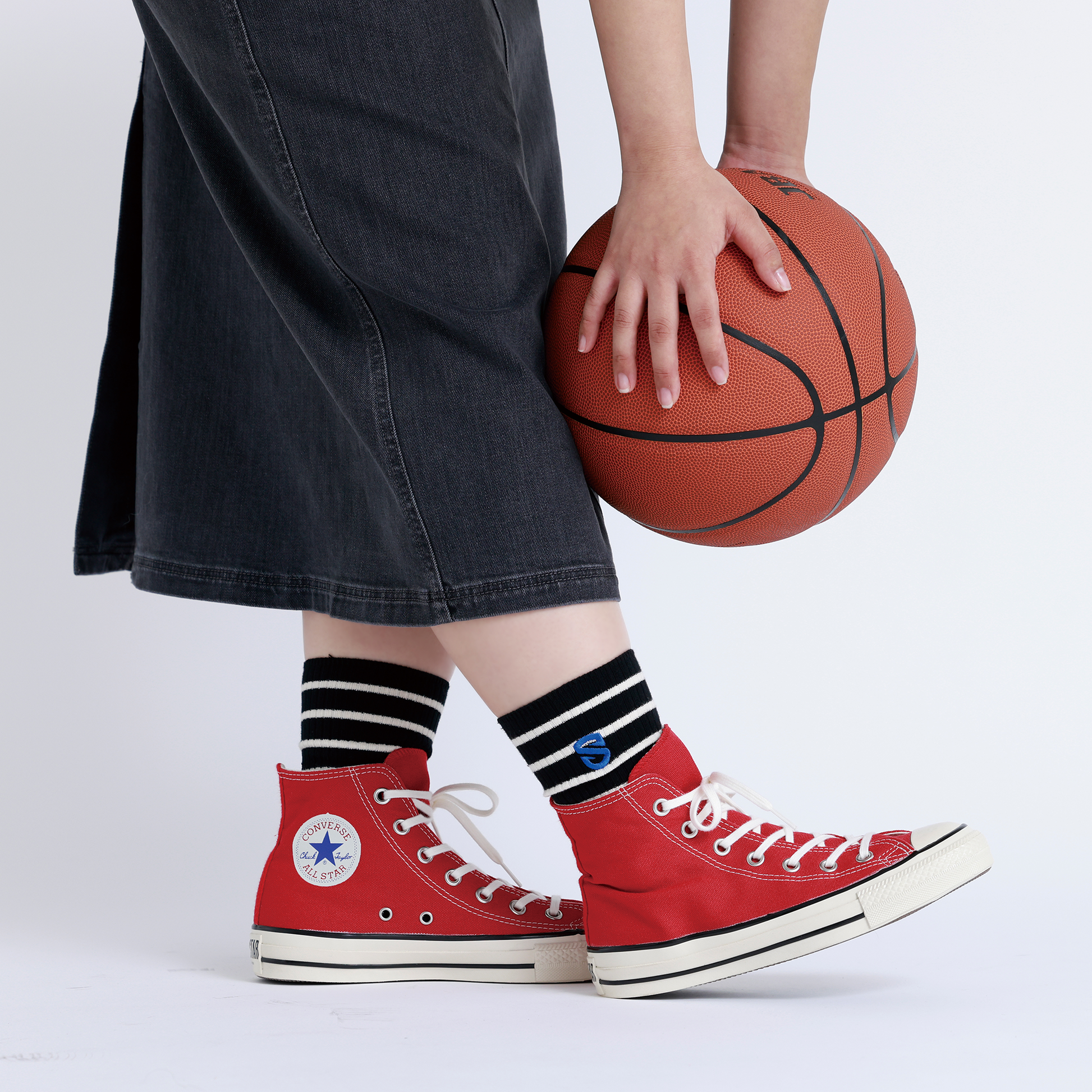 カジュアルなイメージのソックスなので、定番のスニーカーはもちろん、ショートブーツからチラ見せさせてもかわいいかも😍