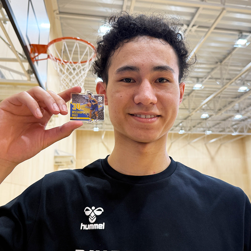 A three-dimensional keychain featuring the background of the arena at the venue and photos of players playing, placed on a thick acrylic plate!