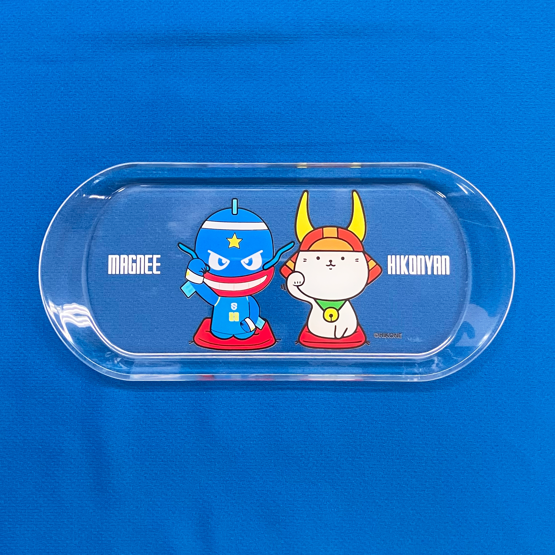 並んで座ったマグニーとひこにゃんがかわいいデザインのトレイです。