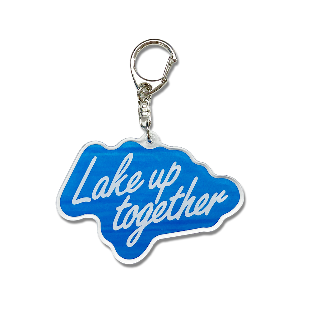 キーホルダーをカバンなどにつけて、みんなで一緒に「Lake up」!