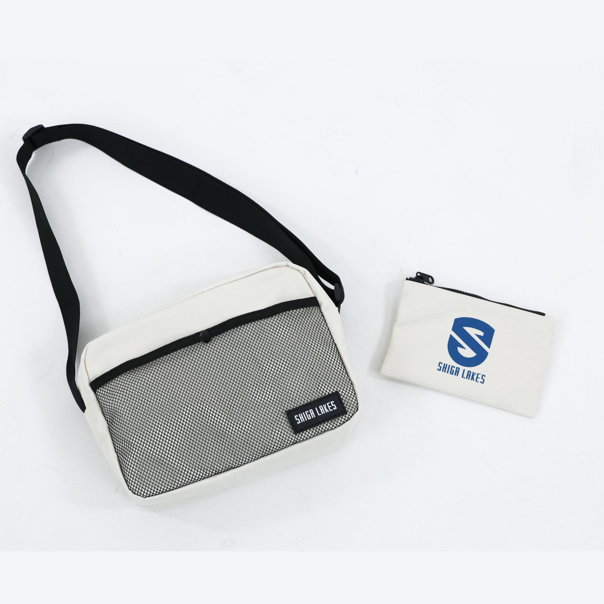 エンブレムがプリントされたポーチはショルダーと別々に使用しても、写真のようにセットして使用してもOKの2WAYタイプです☺️✨️