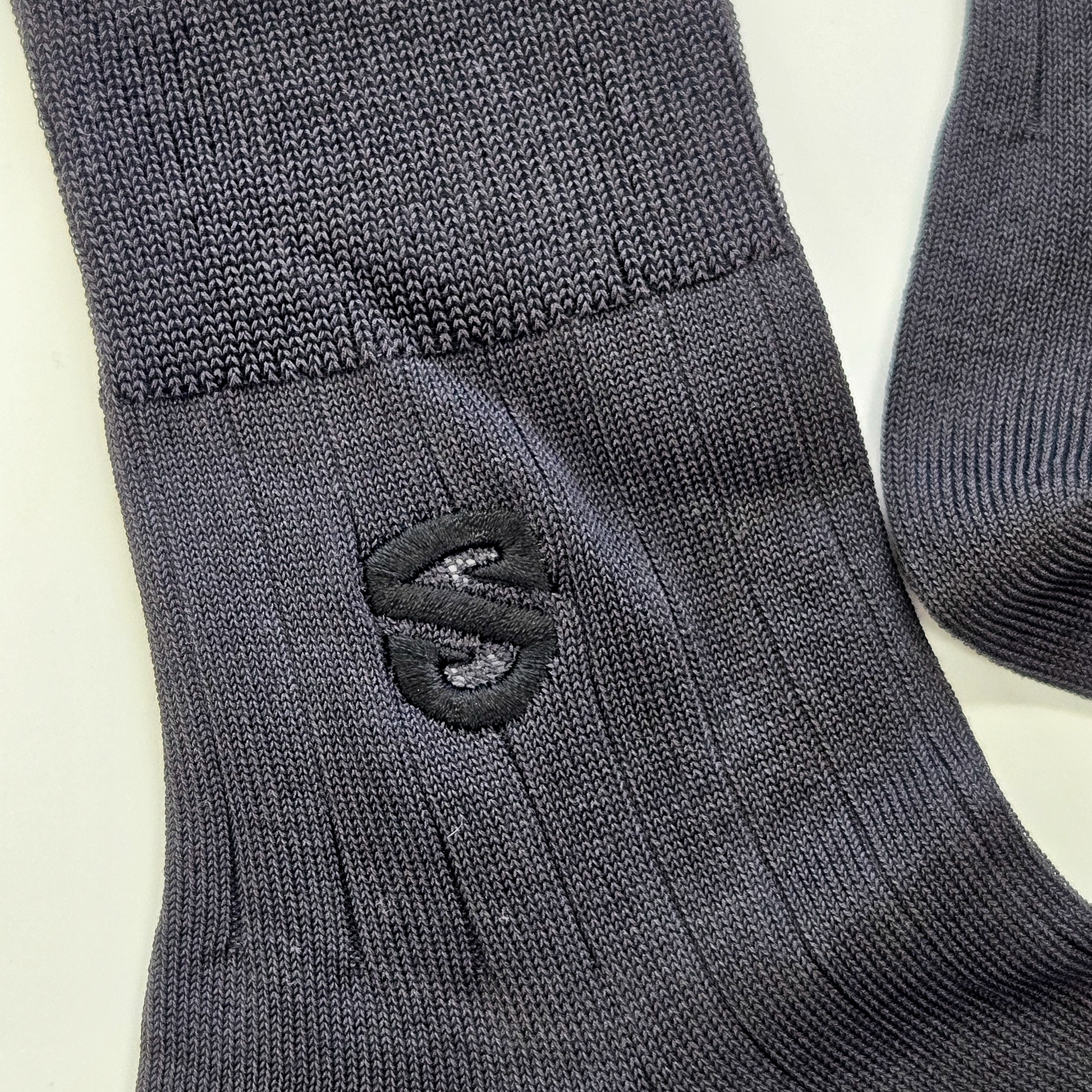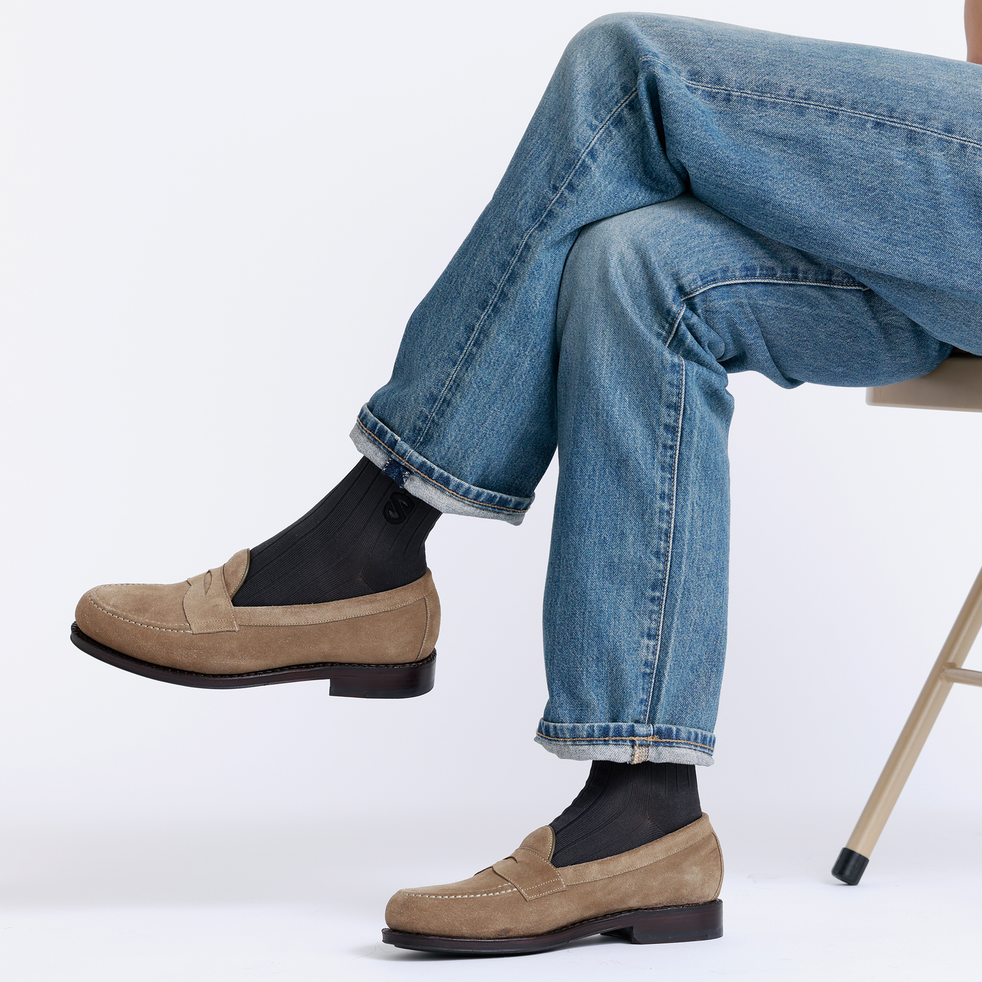 ビジネスシーンにぴったりな定番ショート丈のリブソックス。