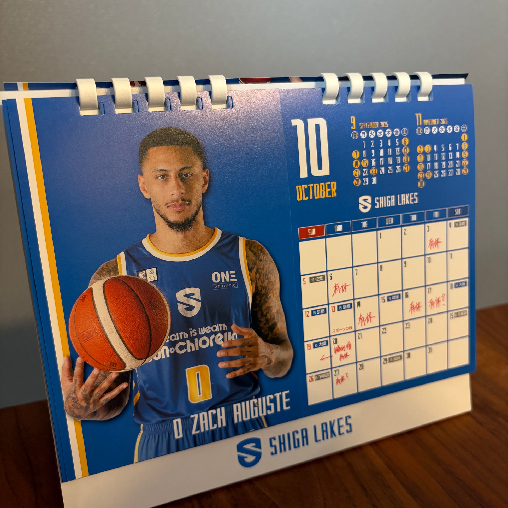 シーズンに合わせて10月~9月までのカレンダーとなっており、HOME & AWAYの試合日程はもちろん、所属選手の誕生日も記載されておりレイクスのスケジュールを一目で管理できるアイテム✨